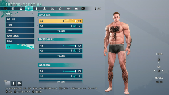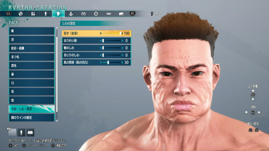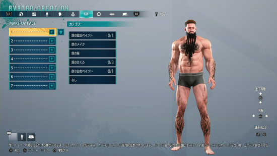 捏脸界面中,可供玩家调整的选项十分多,包括性别、肤色、体毛、身高、皱纹、胡须等等等等。