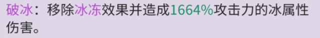那么说完了冰冻状态,接着要说到的便是针对处于冰冻状态的敌人,刘羽禅可以打出不俗伤害的破冰效果,这里刘羽禅包含破冰能力的技能有: