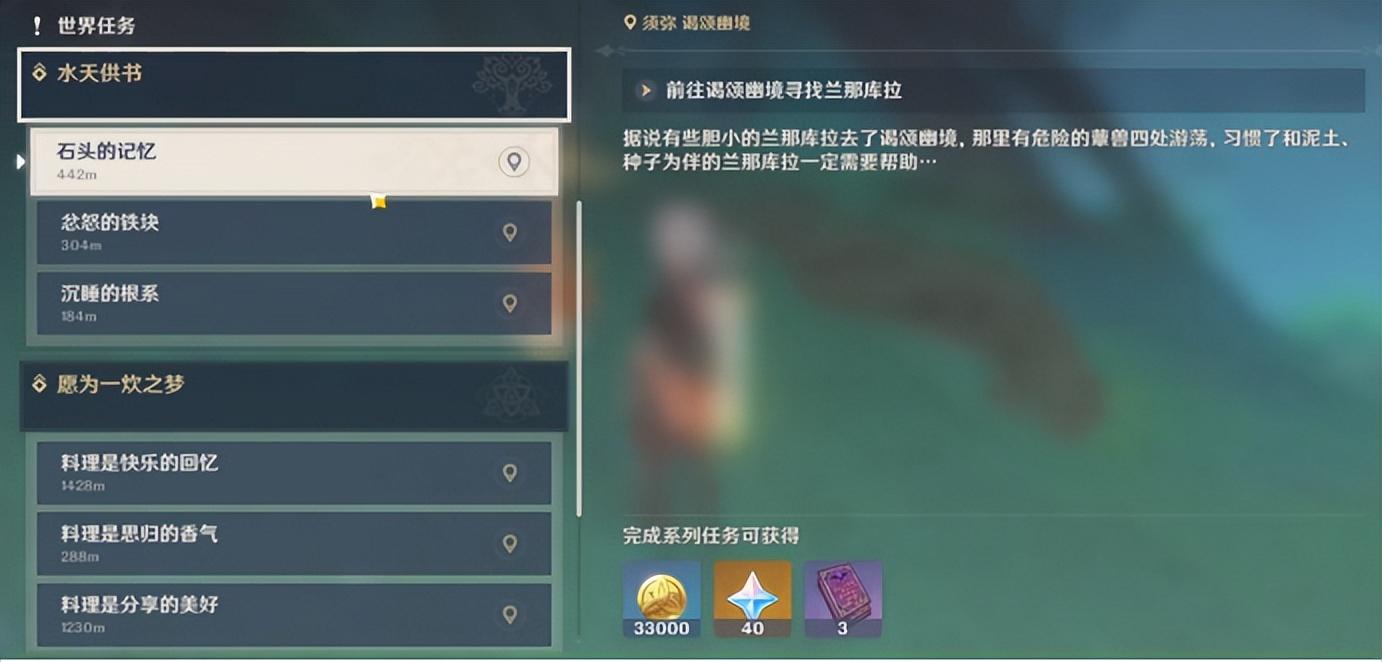 除了童梦的切片副本以外,还有大佬通过视频分享了开启晴雨的经纬副本的完整攻略。游戏内,大家开启经纬副本之前需要完成森林书任务,然后才能顺利领取到水天供书任务。由于水天供书的任务流程较长,因此玩家需要仔细按照任务的提示来完成。