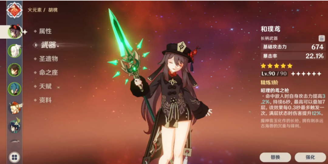 护摩之杖是五星角色胡桃的专武,以及钟离的专武之一。
