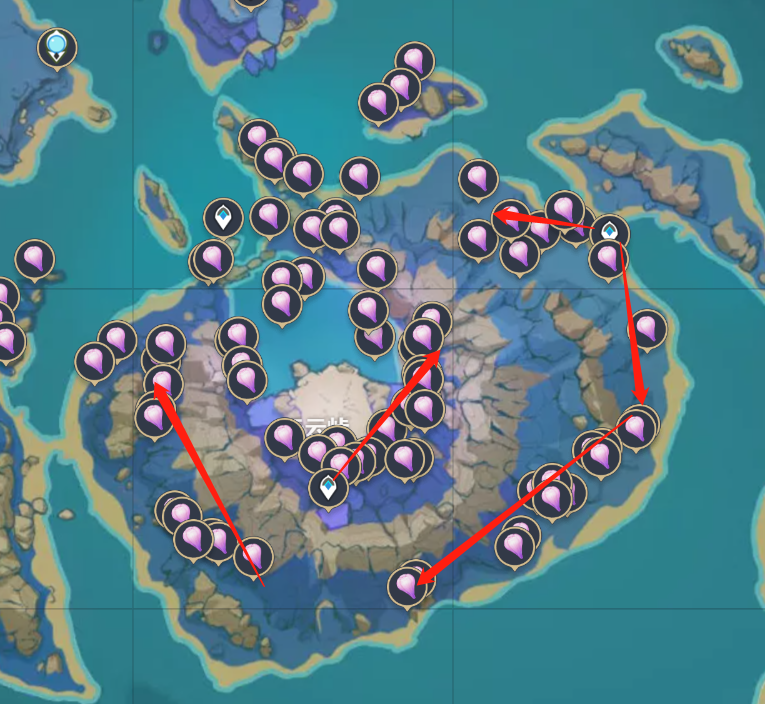 1.天云草实(雷电将军需要的材料,这个材料的位置已经很密集,带上五郎到天云峠找就可以,都在这里,很多时候懒得全找,就按箭头的位置走一圈下线,过两天或者想起来再过来走一圈)