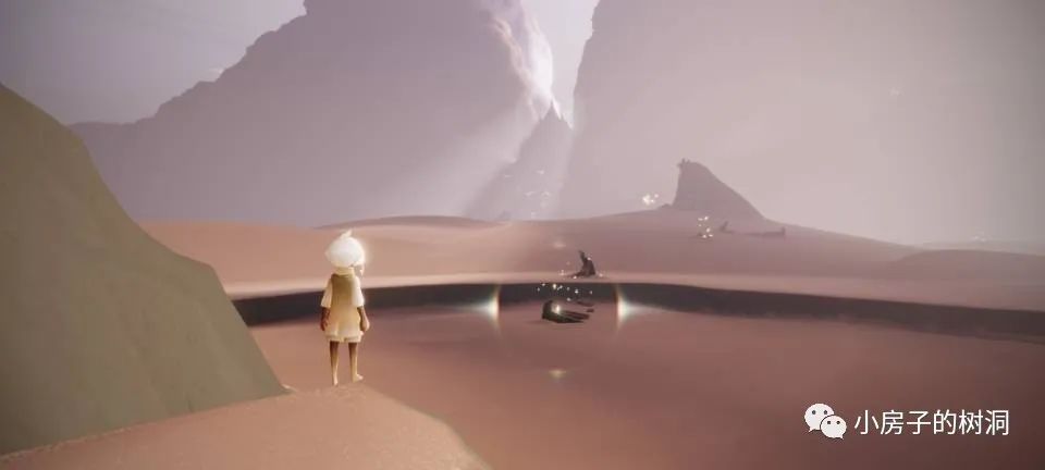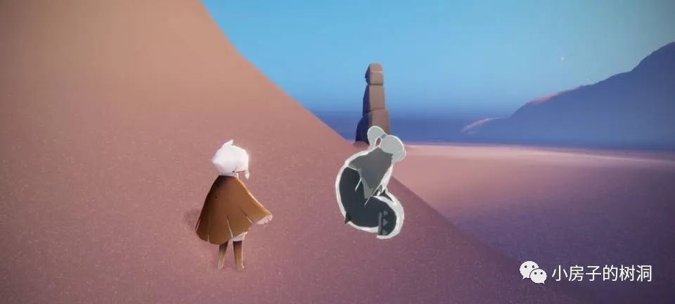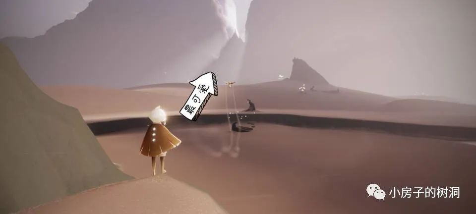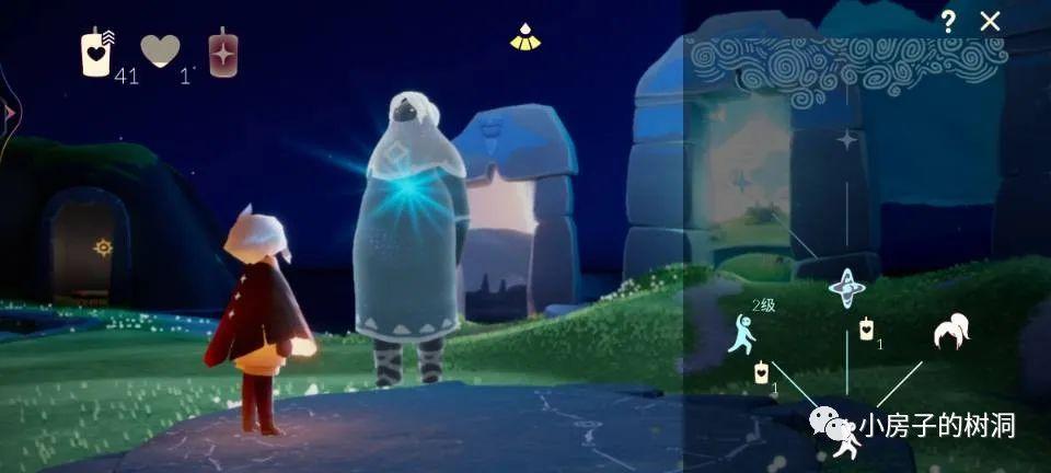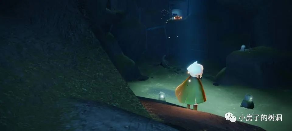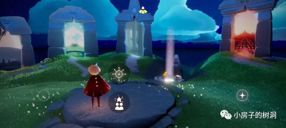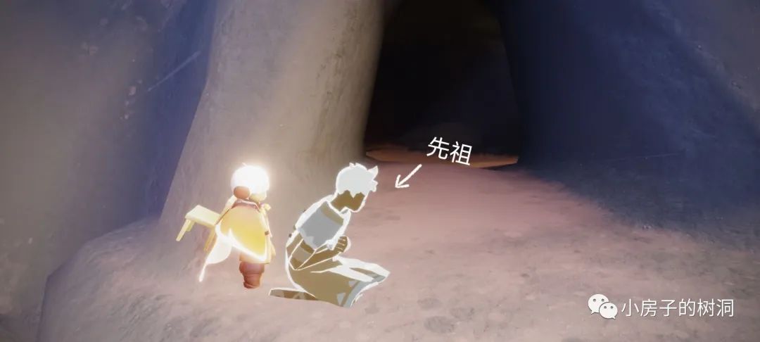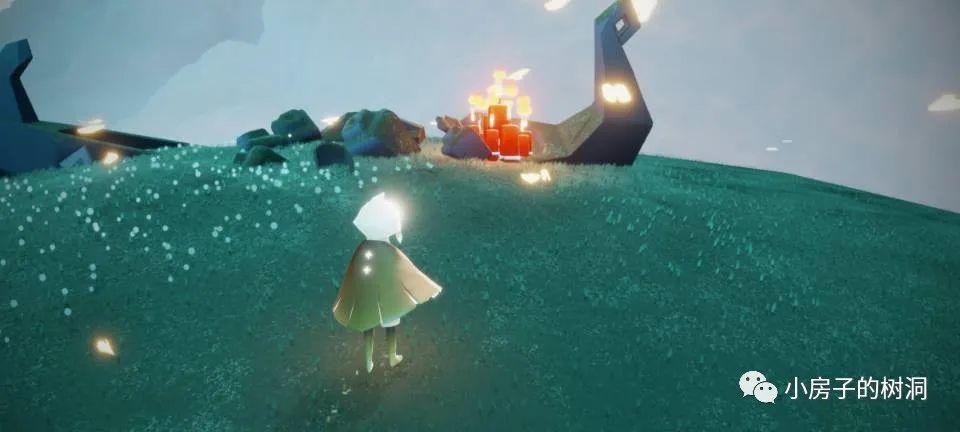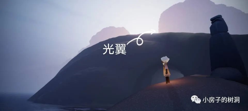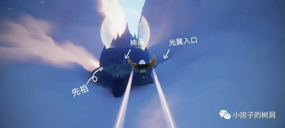 又是熟悉的地方,第四个光翼就在石头上边,同时上去也是需要收集一个先祖才能上去哒。