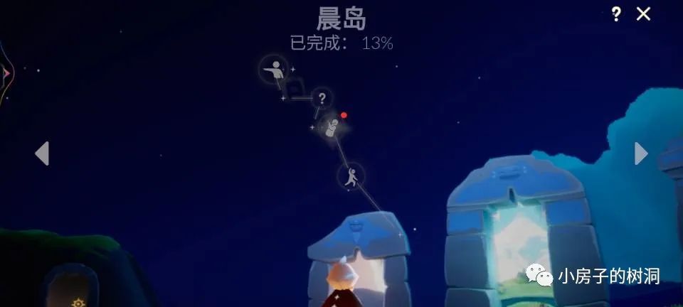 因为晨岛是几个地图中最简单的,同时他也是萌新宝宝们的必经之路,所以,小编把他大致分为三部分,如图1,主地图,预言山谷,以及图2所示,神庙右边的小地图。晨岛共有3个先祖,5个光翼。