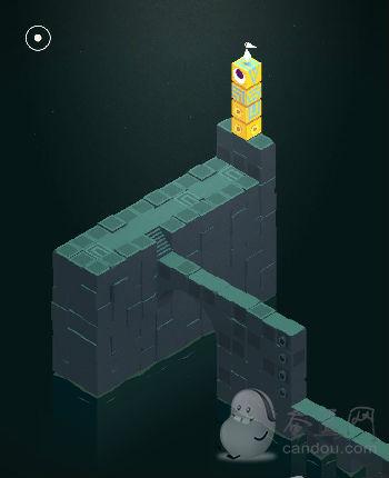 回到图腾上,移动到新的开关处,踩掉,发现右边有个柱子上升了。控制艾达离开开关,将图腾移动到柱子处,踩住开关,将图腾升上来。然后移到图示位置,使艾达回到图腾上。