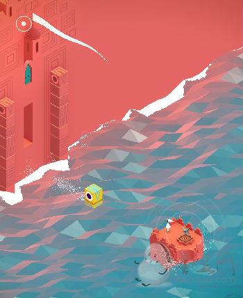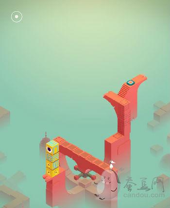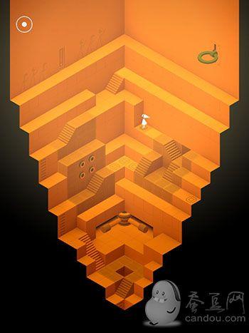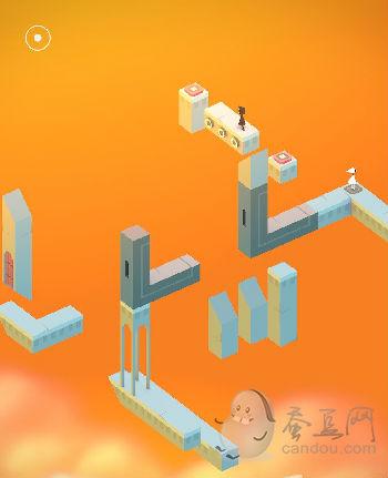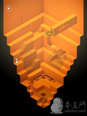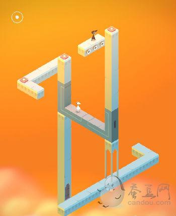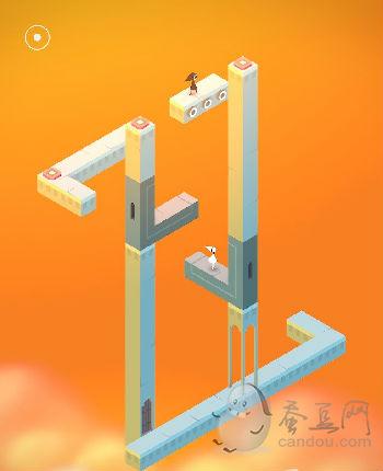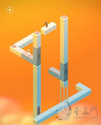 走到橙黄色按键处,艾达脚下的道路将会旋转,此时艾达就像站在墙壁上一样(建议大家将设备屏幕横过来继续游戏)。