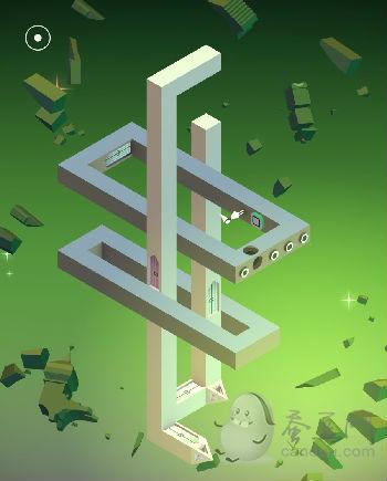 深灰色道路就会往上移动,转一下这个旋钮,就会发现因为视觉差,道路神奇的连接上了。直接走到顶部的终点即可。