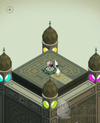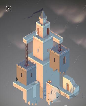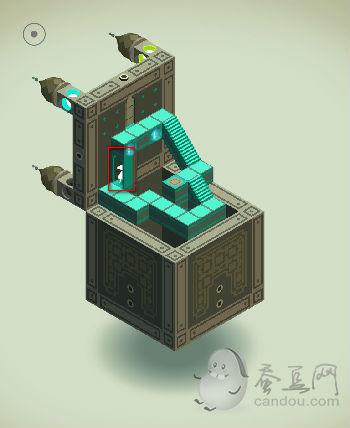 旋转紫色建筑,使艾达走向 4 层,踩住 4 层正中间的按钮,点亮机关。
