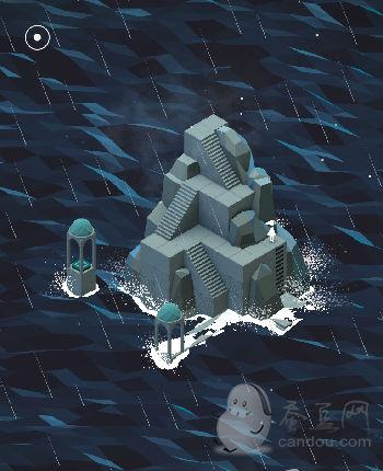 打开右下按钮,进入最后一个空间,这时是没有主人公的,滑动右侧长块,使乌鸦到达按钮处,第四个灯塔亮。