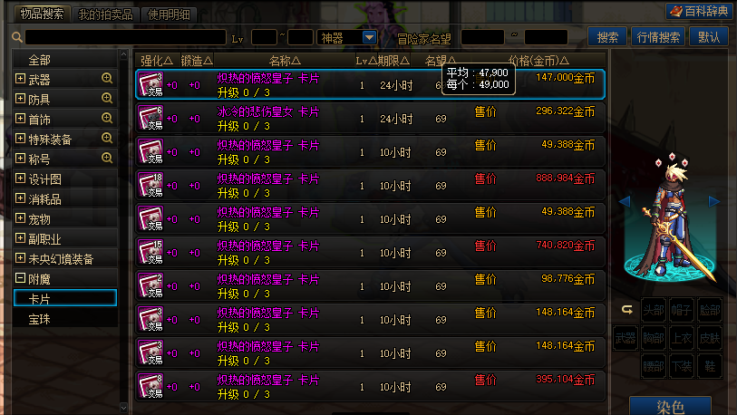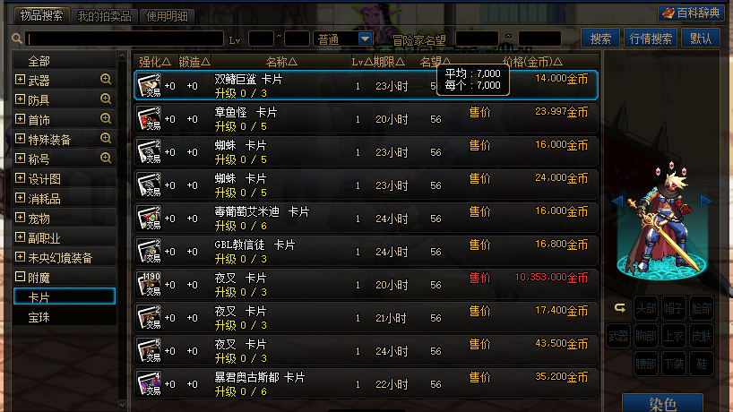 拍卖行神器卡片价格