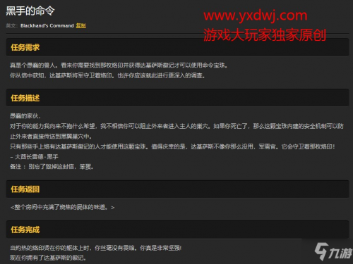 你现在就要去一趟黑石塔来获得这个达基萨斯将军的徽记。