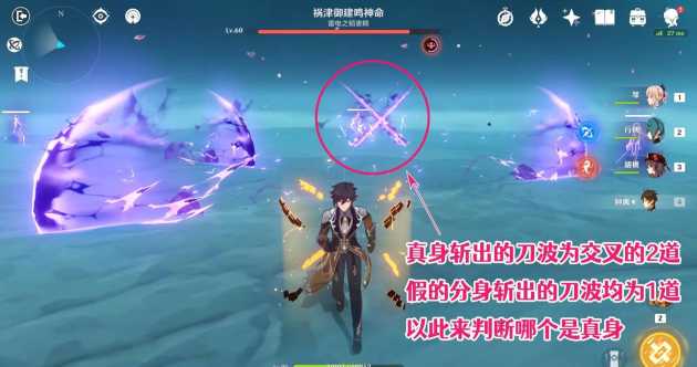 有人会说这不全靠运气吗?小芊告诉大家并不是,稍微注意一下你会发现,真身会使用二刀斩,假身只有一刀。