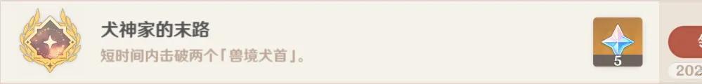 位于稻妻的世界boss黄金王兽,战斗中它的血量到达一定时候会召唤三个兽镜犬首,并赋予自己护盾,我们必须先打破兽镜犬首。而犬神家的末路就是需要快速打破两个兽镜犬首。他们需要使用岩元素攻击才可,小编推荐凝光,最易完成,没有凝光便选择岩主。