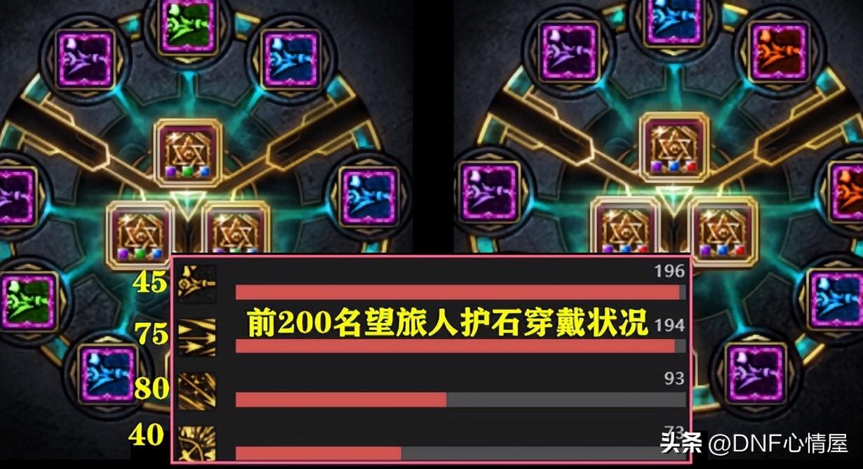 新职业旅人,护石的选择,也会让一些“入坑”的玩家迷糊。从韩服旅人前200名望值玩家中,护石穿戴率上来看,45和75两个护石,这是必须穿戴的。