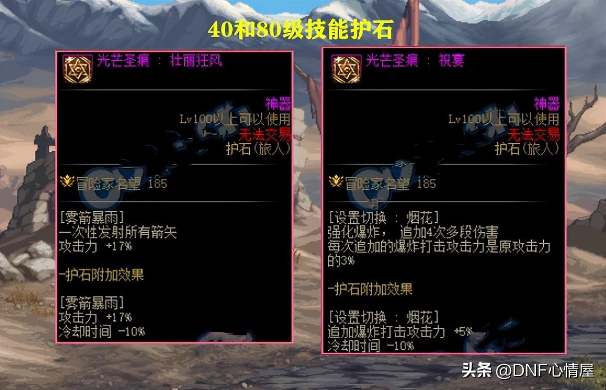 但第三个护石位置,主要纠结在于40级技能“雾箭暴雨”和80级技能“烟花”。40和80技能,都各有优势,穿戴方面上,完全看玩家自身的喜好。