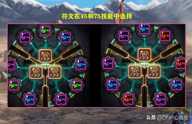 而针对符文,在45级技能和75级技能,两者中间进行选择。当然,要是走特化45,就必须选择45级符文,走特化75,就选择75级技能符文。