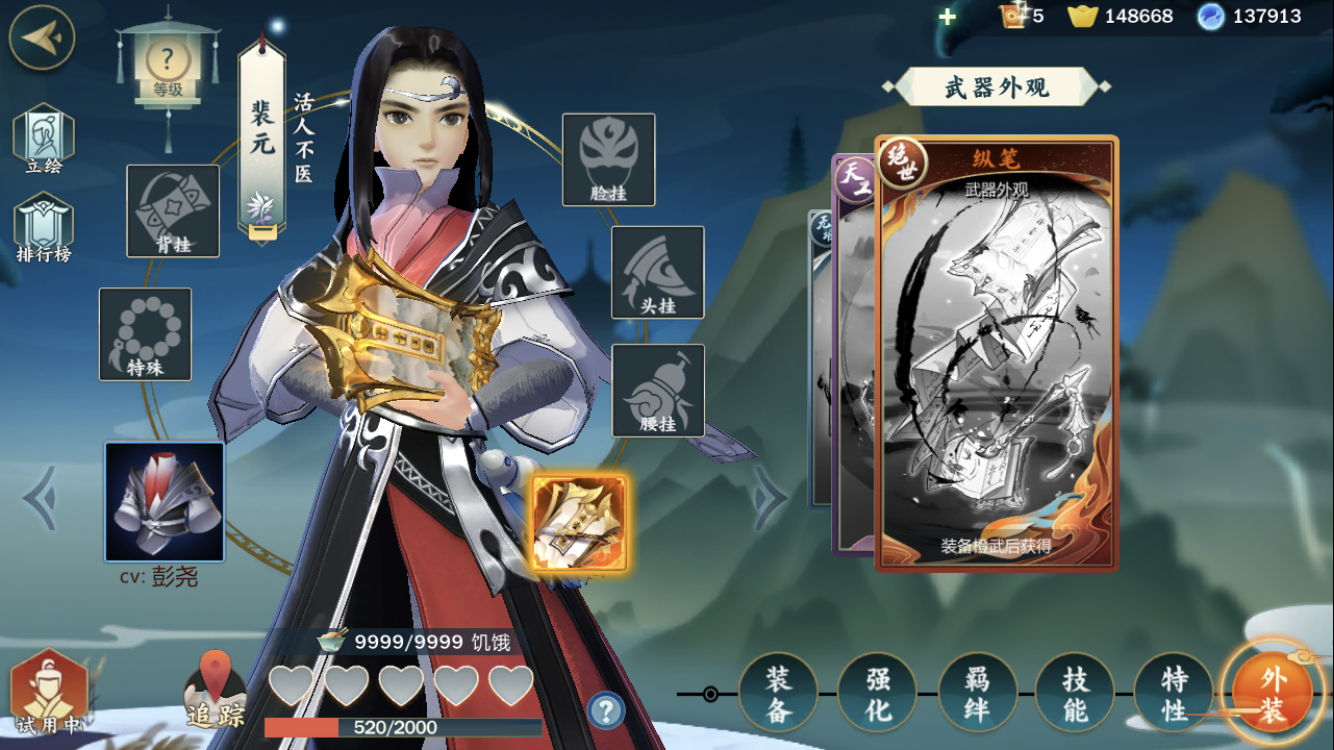 重点说一下裴元的特色技能“逆天改命”。该技能可以帮助裴元复活队友,但需要注意的是,由于其释放速度长达5s,所以在PVP中施展是比较困难的。在没有橙武并且队友没有牵制住敌人的情况下不建议去强行复活队友,很容易造成自己死亡。