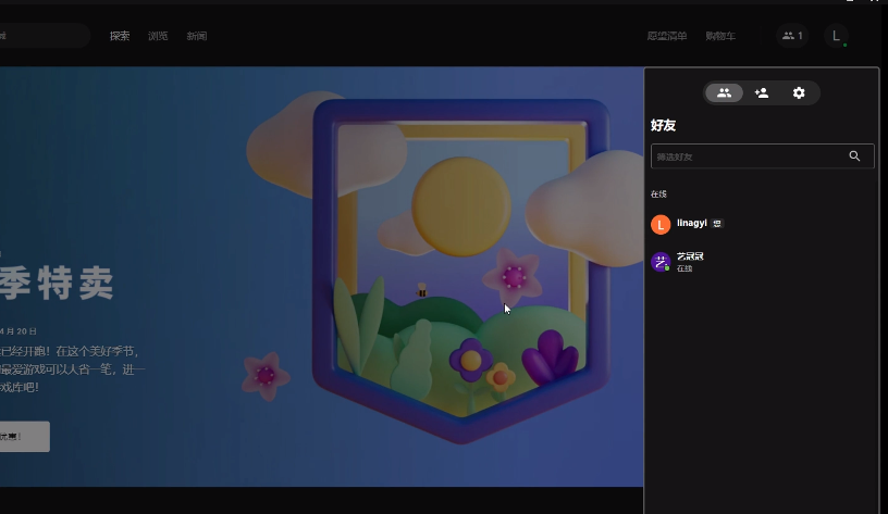 1、首先,我们和好友都需要登录EPIC和Steam账号,我们在EPIC客户端点击右上角“好友信息”按钮。