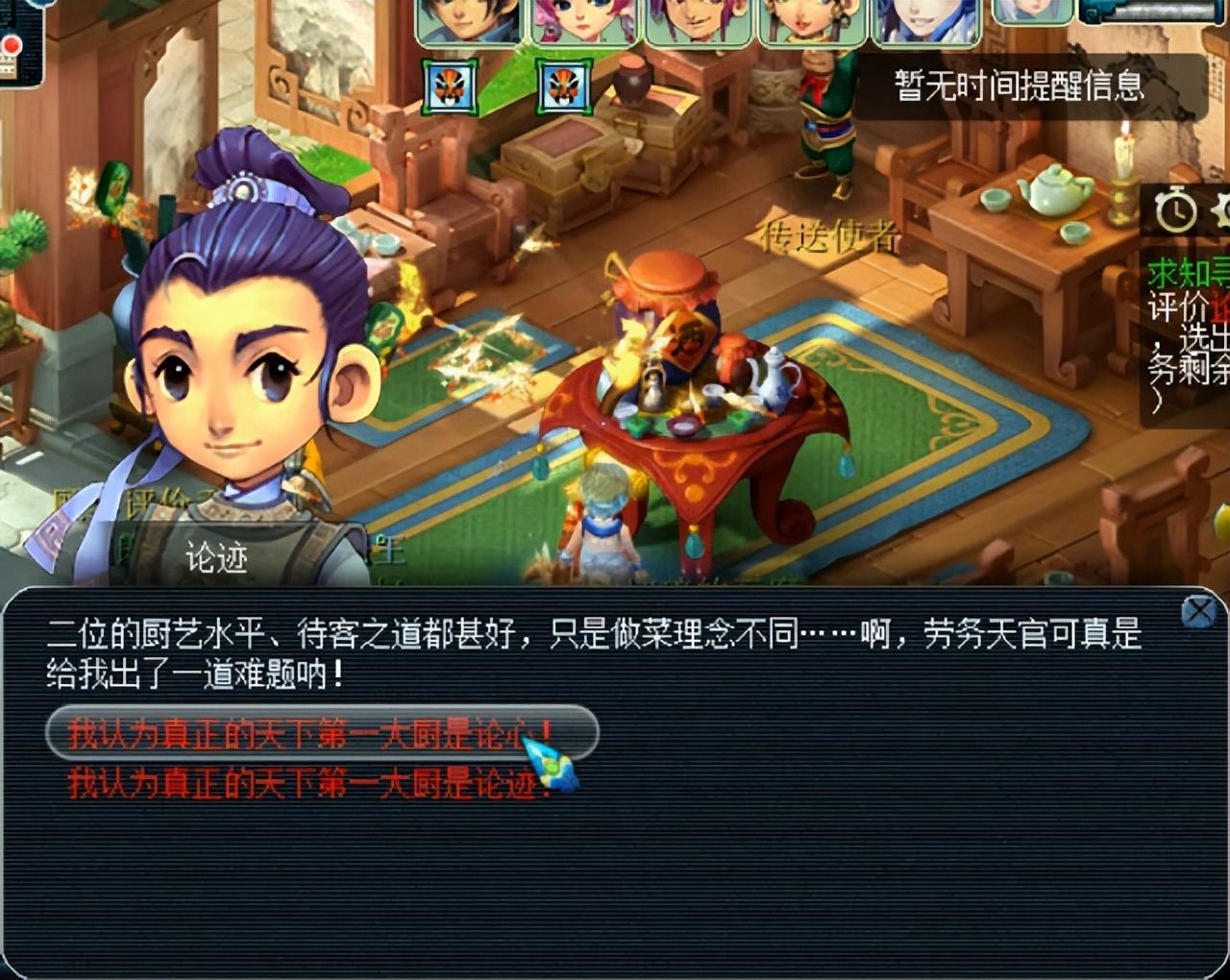 战斗胜利后,与论迹对话,选出你心目中的第一大厨,小副本就结束了。