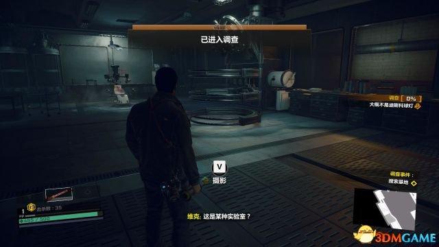 对房间中央的照射灯(不是Disco球灯)、手术椅(最烂的牙医)、维克在观望的盒子(神秘装置)进行拍照。