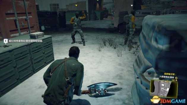 接着按C键以蹲伏的姿势前往入口,期间被一名士兵发现也不怕,直接用拳头将他揍倒。