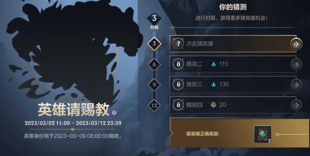 英雄联盟手游2023英雄请赐教活动中要猜英雄,那么答案究竟是哪个英雄?2023年最新的英雄请赐教活动猜英雄的答案小编这就分享在下面,大家赶紧看一看下面小编带来的攻略,了解清楚英雄请赐教3月最新答案。