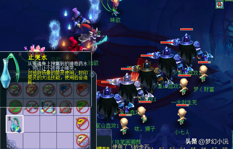 第七环:婴灵和冤魂,注意:号底子不足的,在击杀冤魂的时候,先杀“意欲”,主怪可以不杀,小怪杀完,主怪会跑。婴灵:先杀“哀”,可以预留一个号丢“止哭水”,如果号的法抗低,主怪的龙卷雨击,还是很疼的。(玄学:在击杀婴灵时如果获得物品,则在BOSS环节基本不会空车)