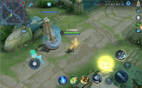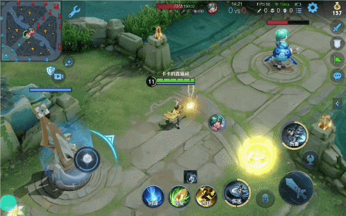 接下来是关键的一步了,这个学会了,后面的几种连招方式就很轻松了。松开三技能之后,只需要控制方向盘即可,这里滑动的距离不能太多,只能滑动2段,2段之后,可以先停下来,这个时候,我们可以看到头上是有读条的,然后紧接着可以释放一技能,然后方向键再朝着一技能释放的方向去控制,这个时候刚好也是滑动两端,停顿的那个瞬间,最后一下的方向键可以随意滑动,都会飞起来的。