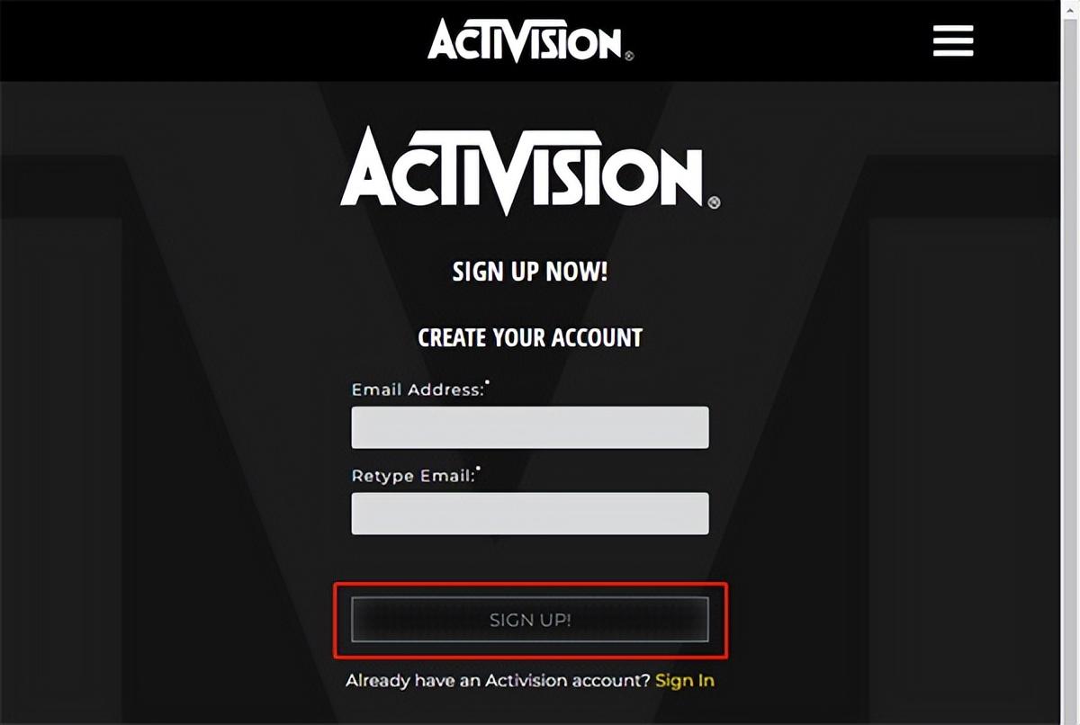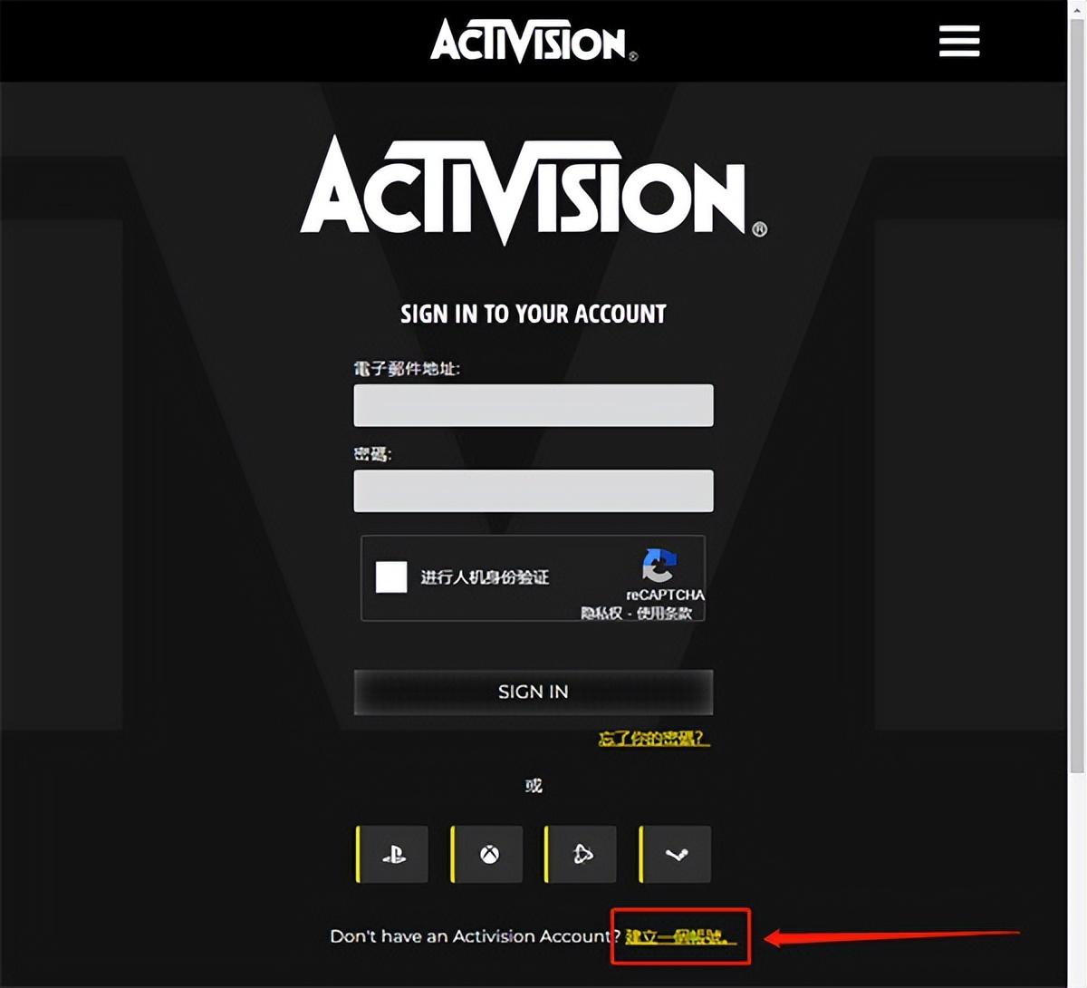 第四步:进入动视官网,点击登录页面最下方【建立一个账号】。