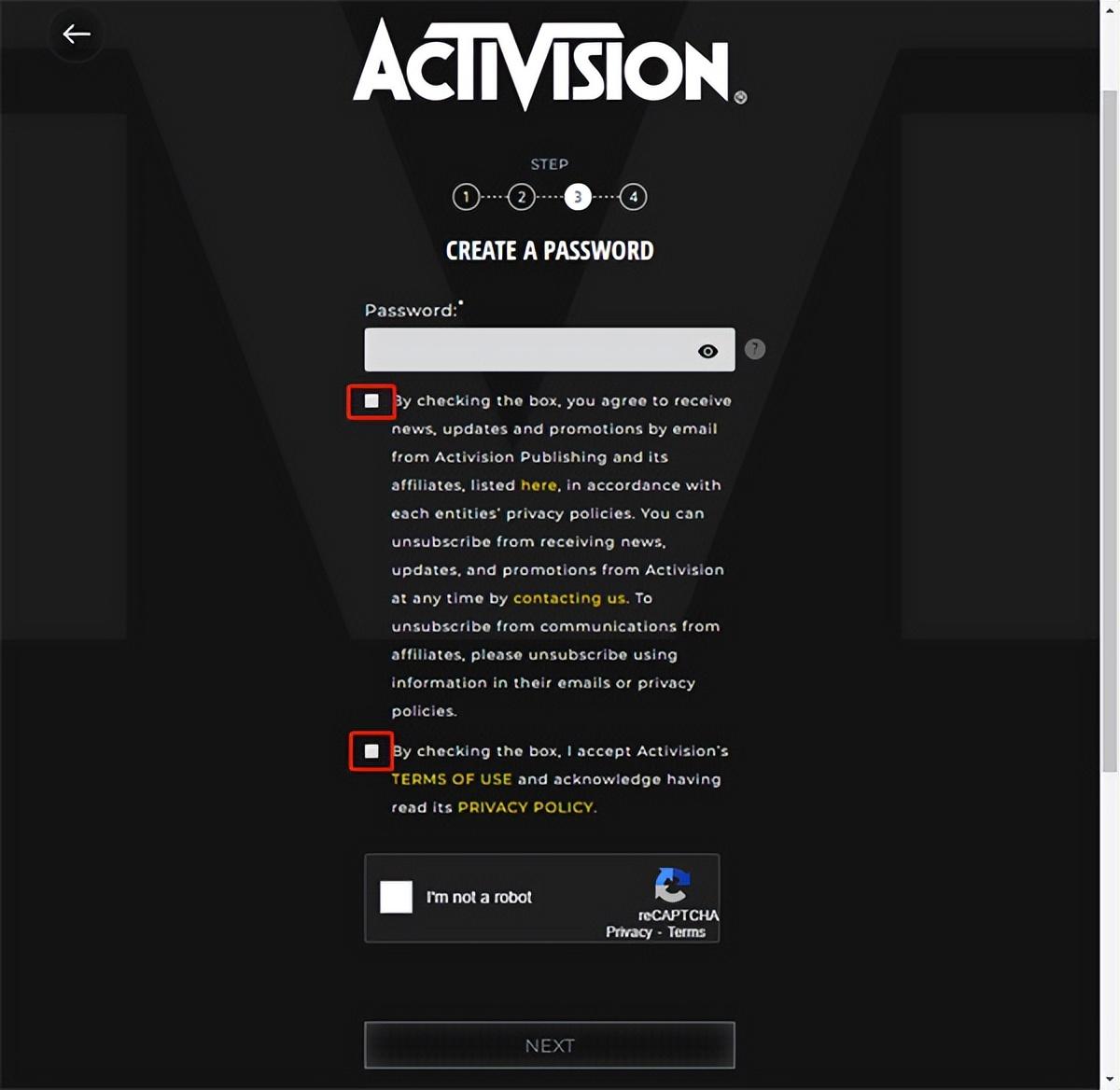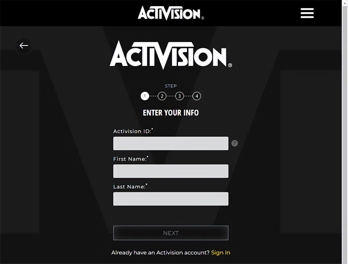 第六步:填写好动视ID和姓名,点击【NEXT】进入下一步。