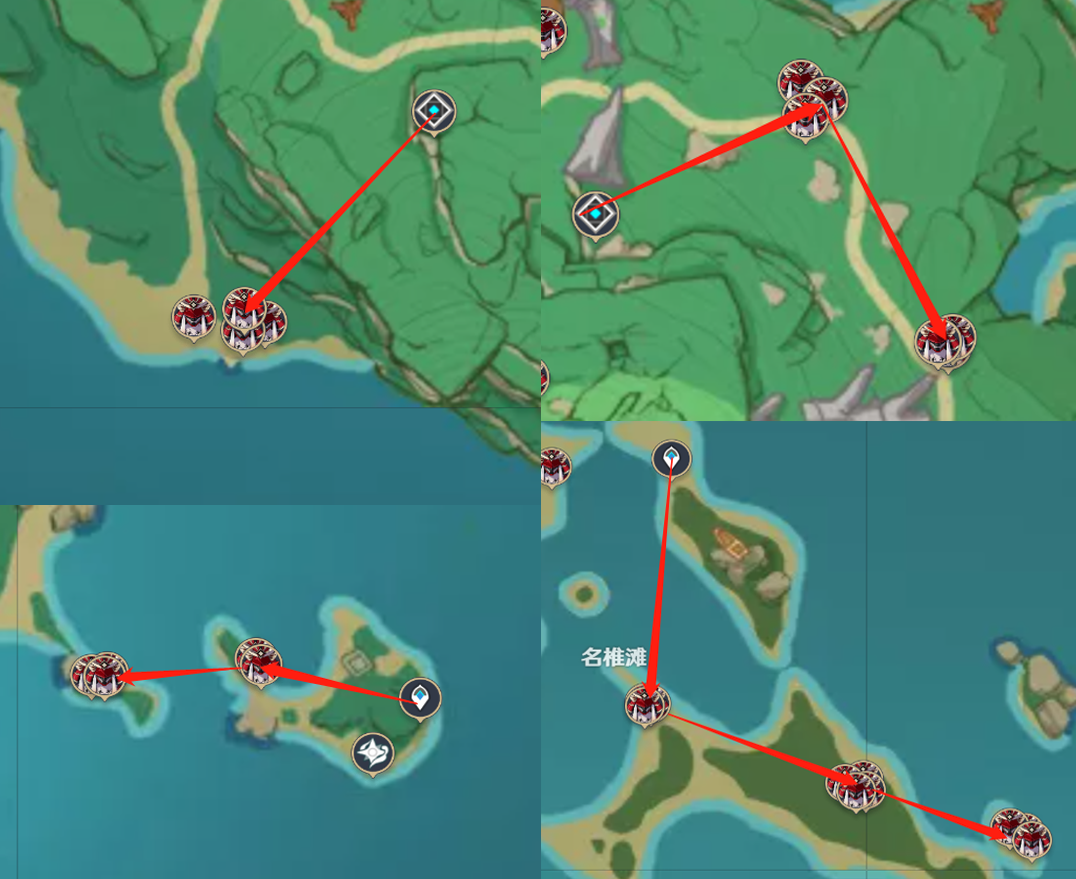 3.野伏众(雷电将军和神里绫人共同需要的材料,要的量比较大,多贴一些地点,勤快一点的可以多打点,懒得动的可以找与锚点较近的怪打。)