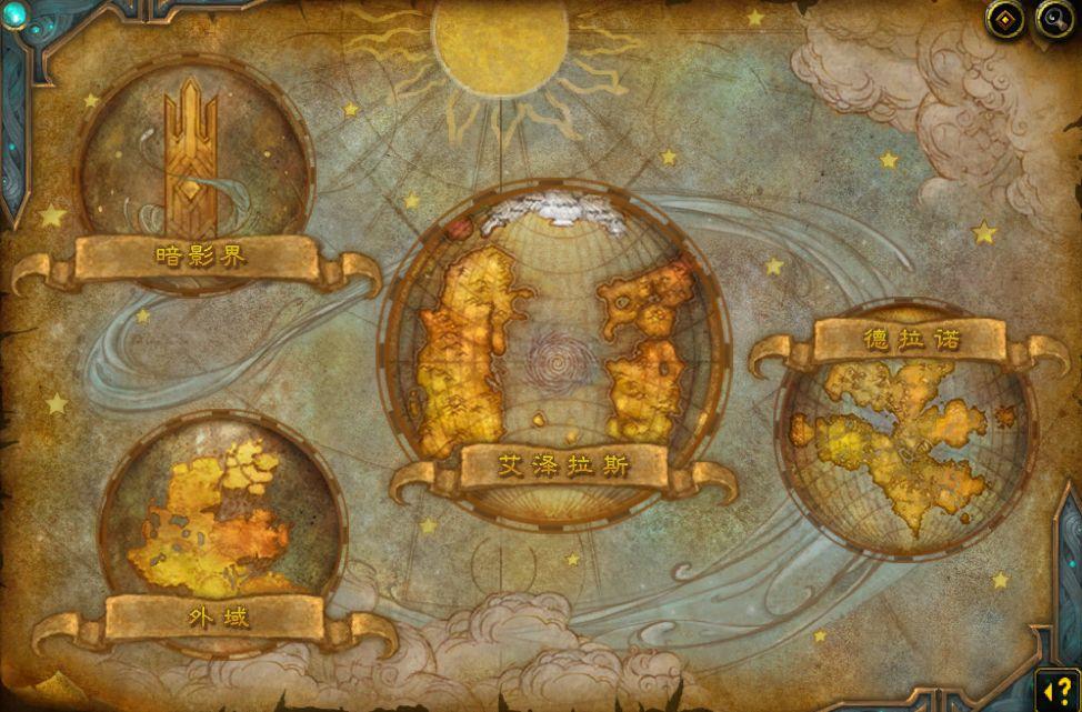 魔兽世界每一次大版本更新都会更新一块地图,现地图总共分为艾泽拉斯、外域、德拉诺、暗影界这几个区域,这个几区域包含很多小地图和地下城,图队副队等。