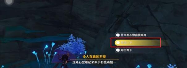3、任务提示会告诉我们需要调查石壁上的灌木。