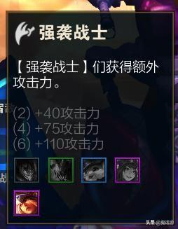 强袭战士。强袭战士们将会获得一个外的攻击力加成效果,也就是相当于多了一件没有任何特殊效果的装备罢了, 可以直观地看到面板属性的增加,在小编看来,这是一个比较好的附属羁绊,可以用来增加作为主C的强袭战士的攻击力,从而扩大战斗的优势。