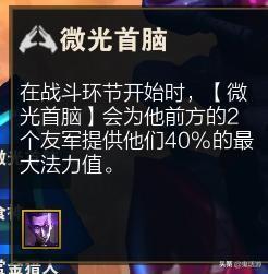 微光首脑。这是希尔科的特殊羁绊,在战斗开始的时候,希尔科会给他前方的两名英雄提供一个效果,那就是增加他们的初始法力值,可以直接增加百分之四十,可以让这两名英雄尽快地释放出第一个技能,甚至是战斗刚刚开始就可以释放技能,在小编看来,这个效果对于那些启动慢,法力值要求极高而且初始法力值极低的英雄特别有用,毕竟这一类的英雄的技能输出都是特别的恐怖的,首当其冲的就是维克托,这样就可以迅速地建立起战斗的优势,进而获得战斗的胜利。
