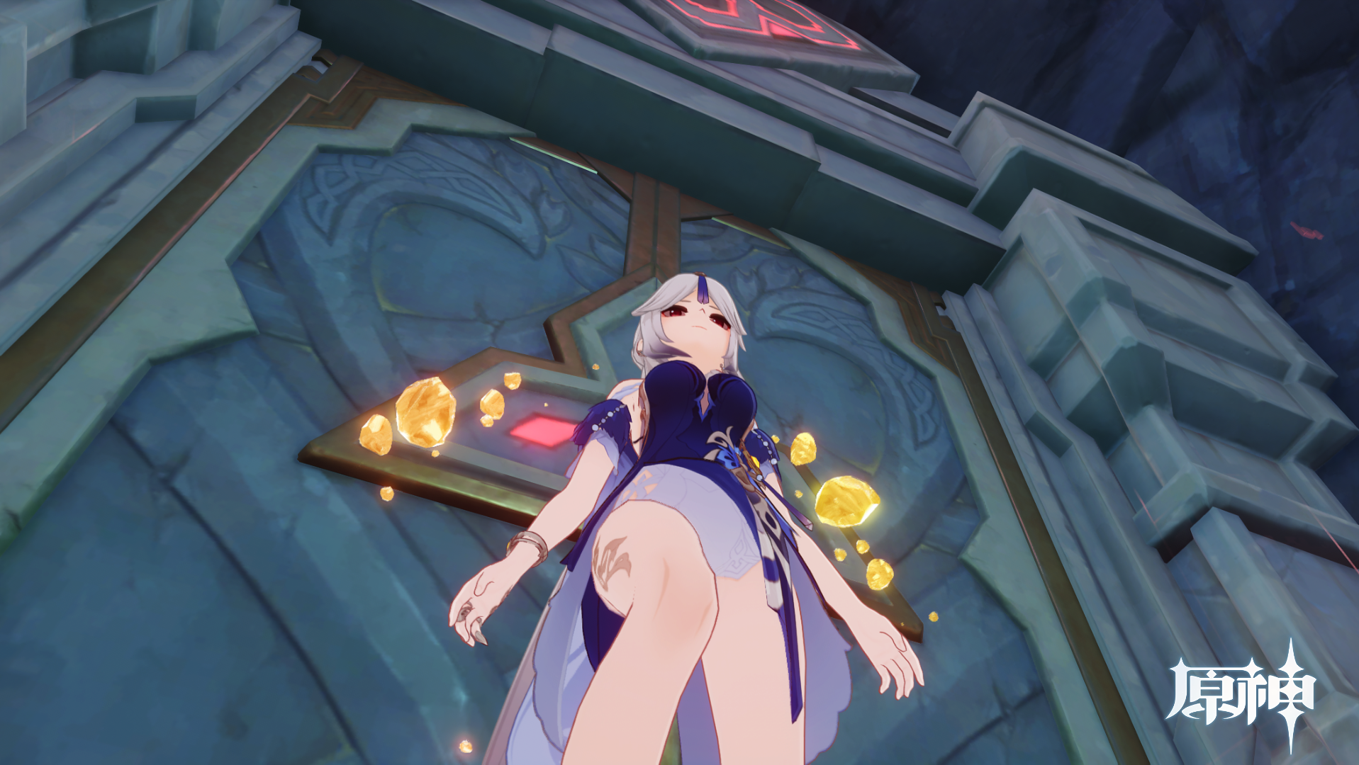 6、我请到凝光大人帮我打开了副本的机关。凝光的E(璇玑屏)算是岩造物。