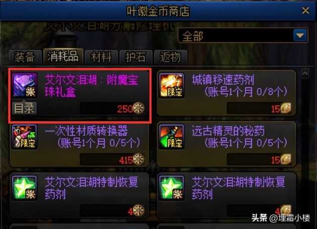 成长类副本艾尔文泪湖通关非常容易,60阶段以上获得的叶徽金币可以兑换艾尔文泪湖附魔宝珠,其属性与霜色水晶碎片兑换的宝珠属性相同。