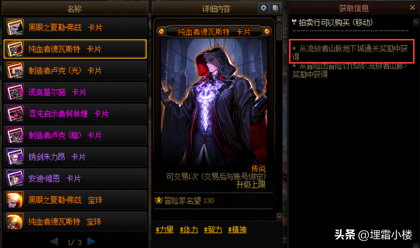 耳环部位的话推荐多刷流放者山脉,对于110版本的我们来说,流放者山脉已经非常简单,每周一次,耳环毕业附魔卡片轻松获取。