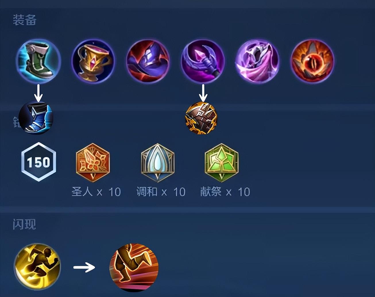 首先,铭文的话调和献祭和圣人,调和不用多说,献祭有24的法强和7%的冷却,很契合东皇频繁释放技能的机制,而圣人增加不少的法强,提升伤害和回血能力。