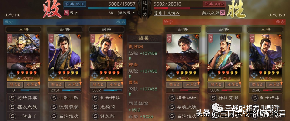 这红度的五谋臣的确有点尴尬,估计是没抽到S3的贾诩,只能选择用满红程昱顶上,结果只用了125战损就拿下了!