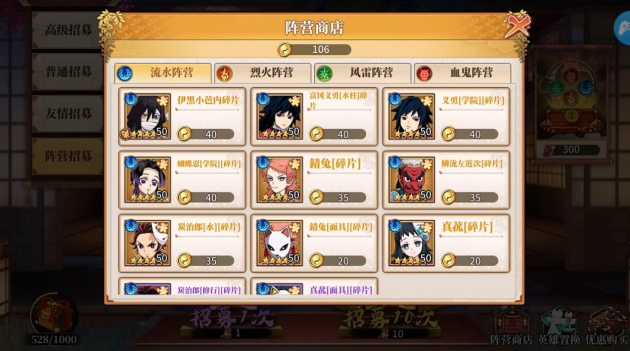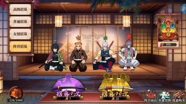 3、招募:在游戏中,玩家们也是能够进行招募的,最主要的获取角色的方式就是招募了,玩家们可以在游戏中,通过招募,是能够获取到非常多的顶级的SSR的就是的,也是比较赚的方式了,不过招募也是有赌的成分的,运气好,能够一发入魂,运气不好,可能几十连抽都没有一个SSR的。