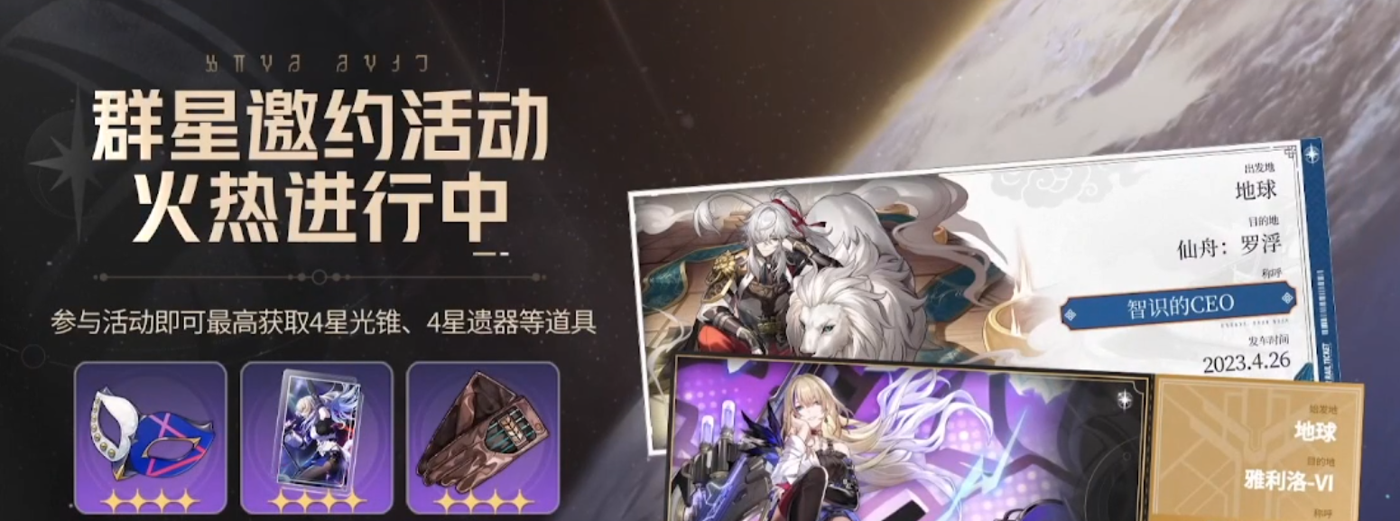 群星邀约活动:这个网页活动目前也在进行中,可抽取4星遗物与光锥,对于开局还是很有帮助的,大家可以搜索去参与下,还可以进行实物抽奖,验证欧皇的时候到了!