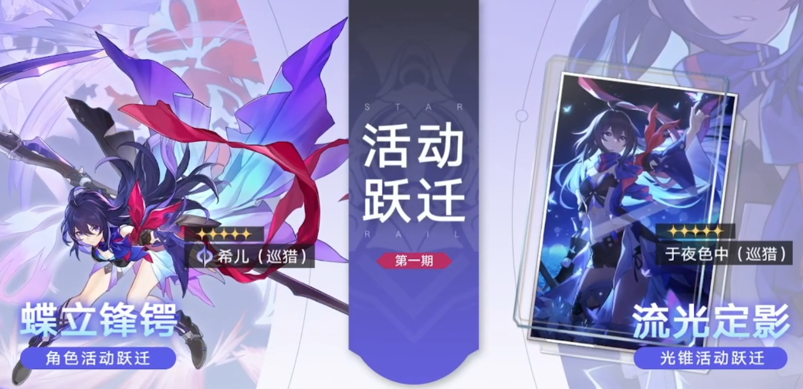 上半段:希儿up池与专武于夜色中,开局有抽到布洛妮娅的,强烈建议抽希儿,马上就能组个强力阵容了,开荒绝佳。