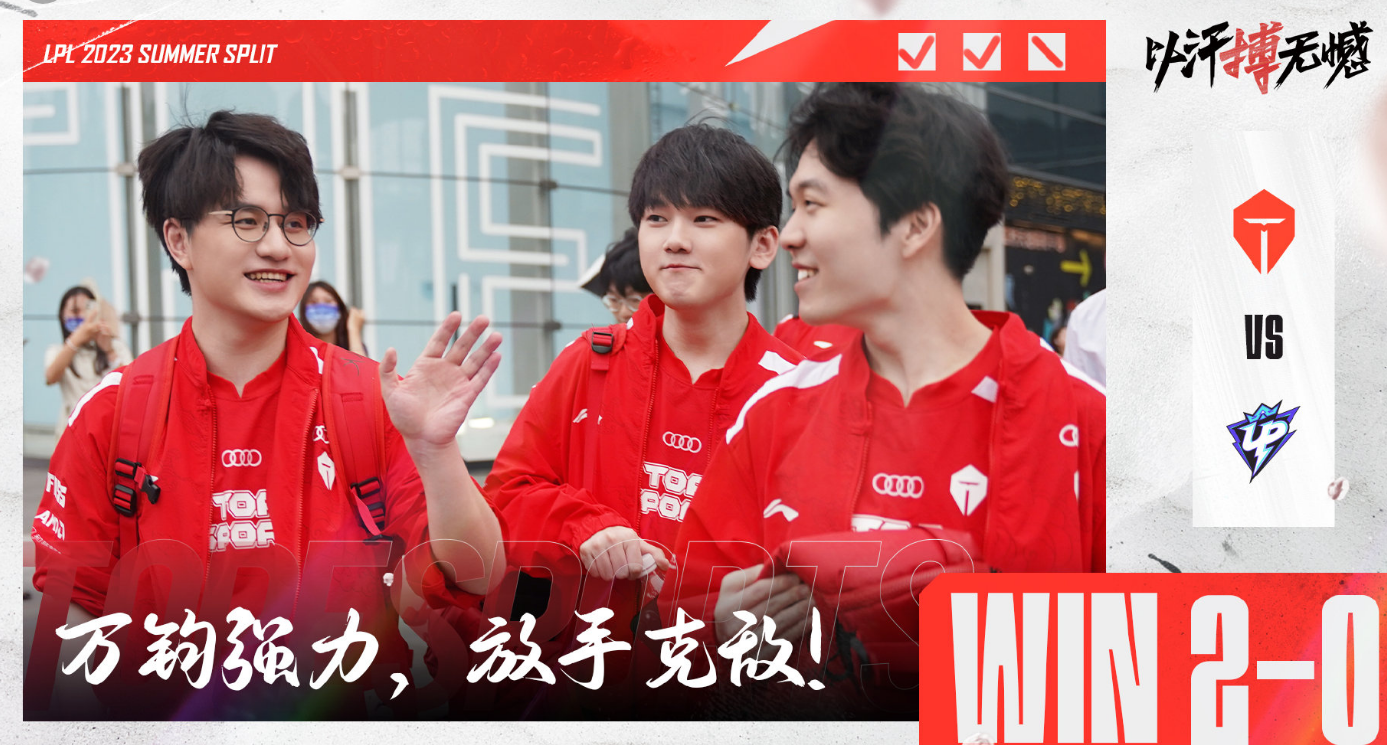 TES今晚以较大优势战胜UP,不知不觉,UP已经迎来七连败了。UP这个赛季,阵容有所转变,宁王的状态非常好,有恢复第二春的迹象。可惜,在赛季末,UP的表现太糟糕了,下路双人组,还有中路,失误都较多。希望UP可以好好调整,打完常规赛最后两场比赛,就当作是吸收经验也好。于UP不同,TES近期的状态,有回暖迹象。如果TES后续两场比赛,能全部拿下来的话,是存在进入常规赛前三的可能的。