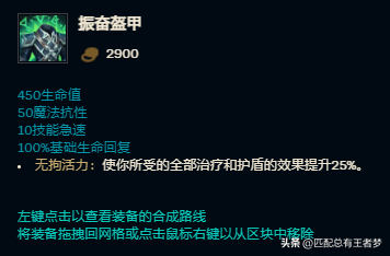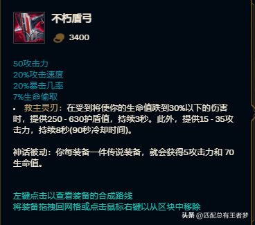 如果在团战处于逆风状态的时候,这时候可以补上一件不朽盾工,不朽盾功提供的护盾可以让我们在一轮集火是能生存下来 ,