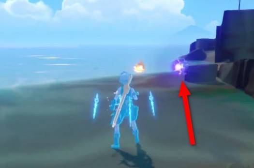 1、来到解除神龛的封印区域,在海边发现第一个,射击并取胜。