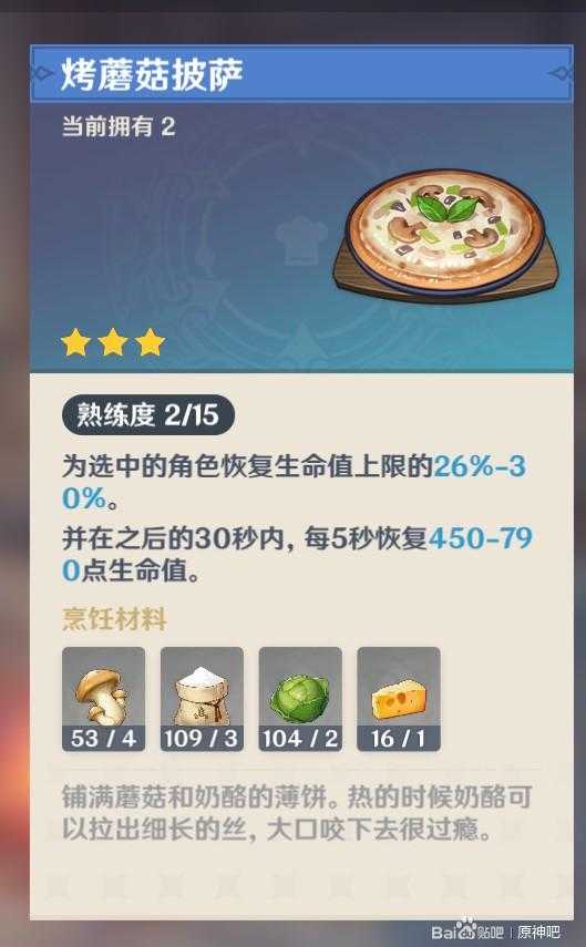 推荐理由,根据食材获取的难易度,与同效果料理的效果最大化而选择。(以角色1W血量为标准)