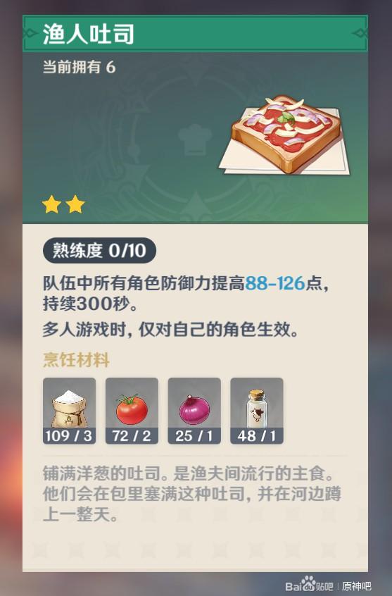 防御类渔人吐司,所有材料能在店铺买,方便快捷。