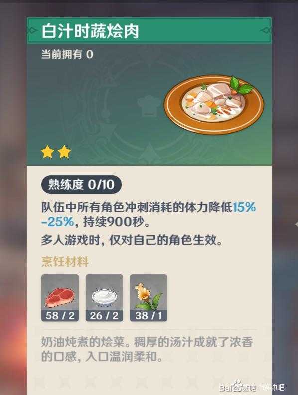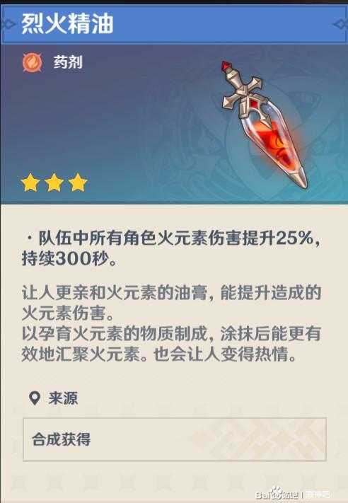 然后是状态类料理(攻击,暴击,防御,体力,元素伤害类精油)
