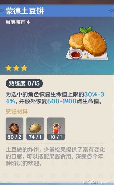 材料:松果*2 (采集) 土豆*1(购买) 果酱*1(购买)