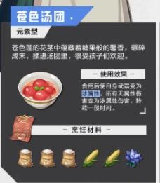 使用效果:食用后使自身武器变为冰属性,所有无属性伤害变为冰属性伤害,持续一段时间。